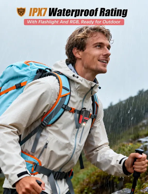 Wearable Bluetooth Speaker with RGB Lights & Flashlight, IPX6 Waterproof